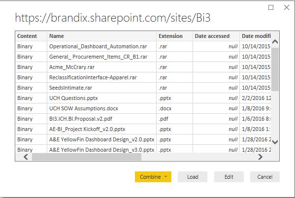 6. Select Edit Queries and select the query. (The retrieval of the list of files will be the 1st Query)